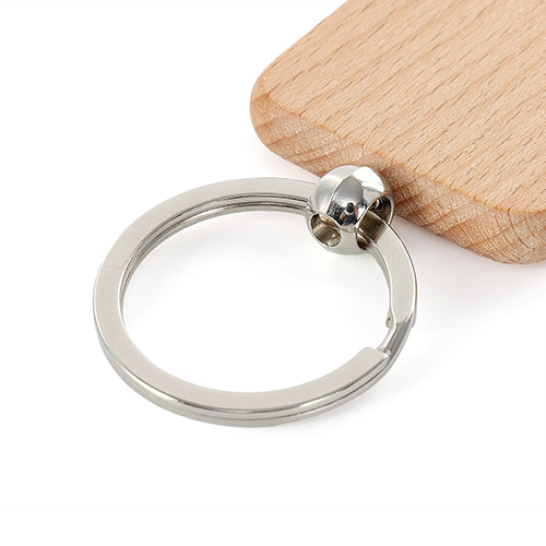 Descrição: Chaveiro em madeira com formato quadrado.