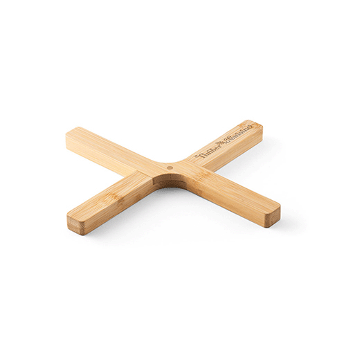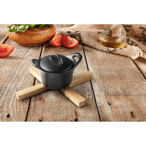 Descanso de panela dobrável em bambu. Fornecido em caixa oferta em papel kraft. Fechado: 215 x 40 x 14 mm | Aberto: 180 x 150 x 14 mm