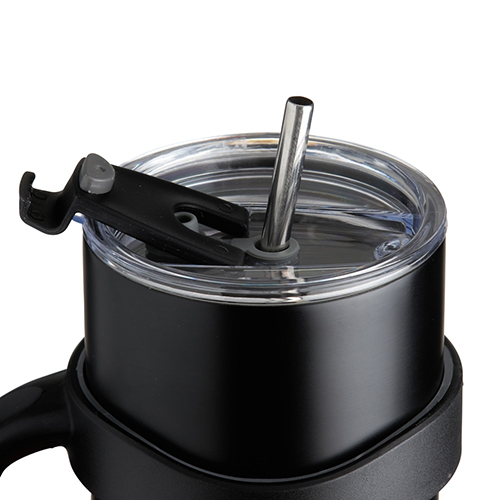 Descrição: Caneca térmica de inox com capacidade para 800 ml, contém duas tampas, sendo uma acrílica com bocal, trava de segurança, e uma pequena tampa acoplada emborrachada para dissipação da temperatura, e a segunda tampa acrílica, contém compartimento que ao deslizar acessará ao bocal. Acompanha canudo de inox e escovinha de limpeza.