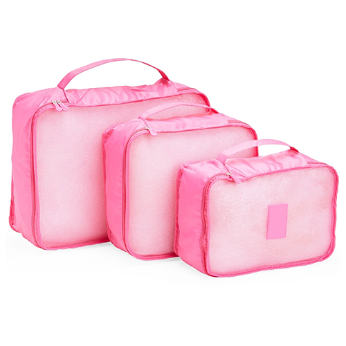 Descrição: Kit necessaire com 6 peças confeccionadas em nylon. O conjunto de necessaires possui tamanhos diferenciados, sendo 3 unidades com: alça para transporte, zíperes com pegadores emborrachados, parte frontal com malha de nylon e plaquinha emborrachada para personalização; possui também 3 unidades de necessaires em nylon inteiramente lisas e impermeáveis.