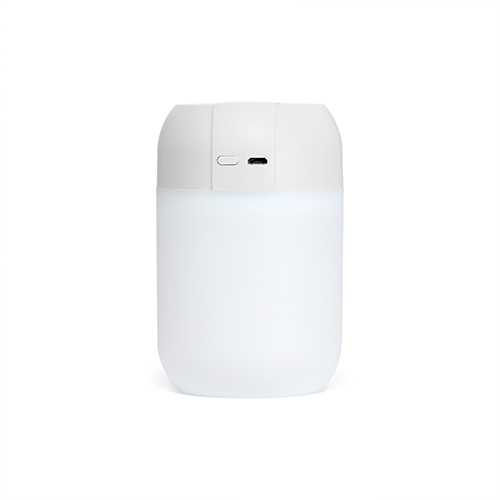 Descrição: Umidificador de ar com LED, possui reservatório de água com capacidade de 350ml, dois níveis de névoa, contínua e com oscilação. Acompanha filtro de algodão e cabo USB V8.