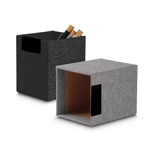 Descrição: Porta objetos em RPET (PET Reciclado) com área de personalização em inox.
