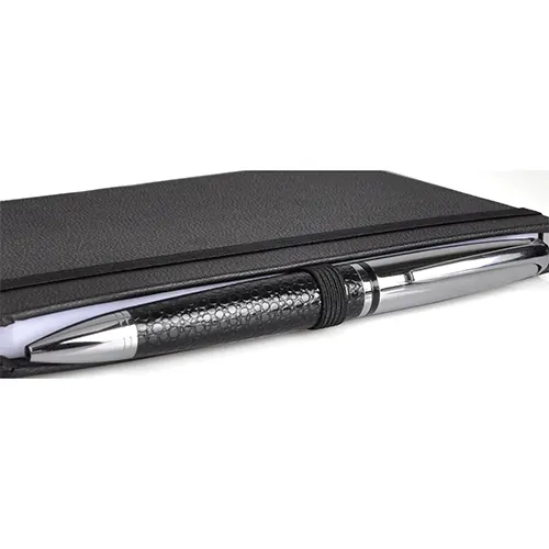 RECOMENDAÇÃO DE PERSONALIZAÇÃO: Uma gravação a Laser na caneta, porta cartão e chaveiro; Silkscreen na capa do caderno.